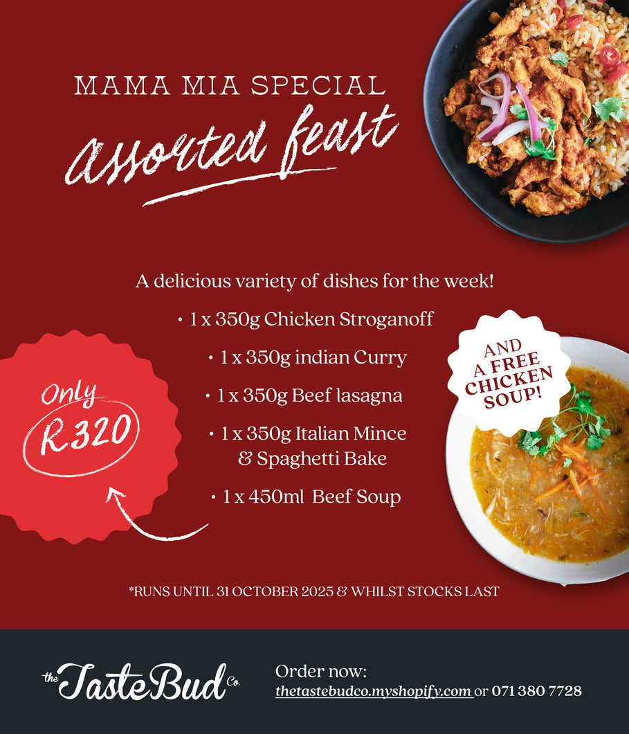 The best home from home food ever. I just love the fact that I live in jhb and one call and my dad gets his monthly delicious home cooked meals delivered to his door. All individually packed and labeled. I don't know what I would do without you. Thank you tastebud